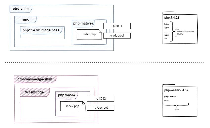当然,为了让 php-wasmedge-aot 有权限读取 index.php 文件,我们必须向 WasmEdge 明确说明,我们要预先打开 images/php/docroot,以便在 Wasm 应用程序的上下文中作为 /docroot 访问。