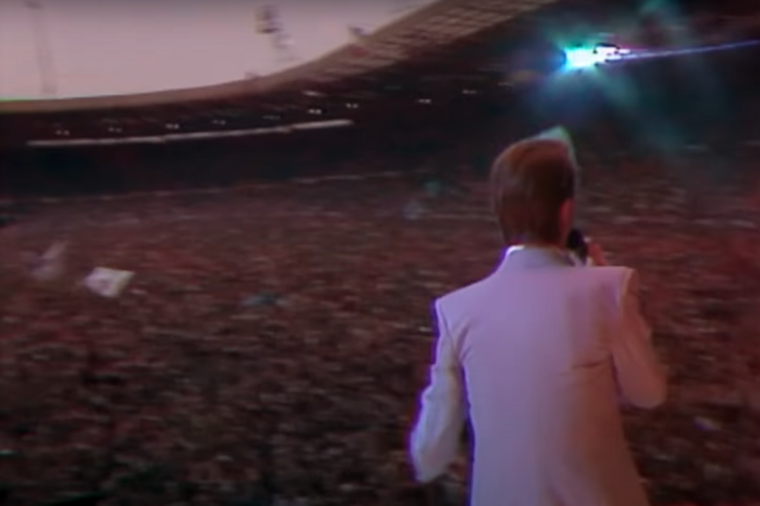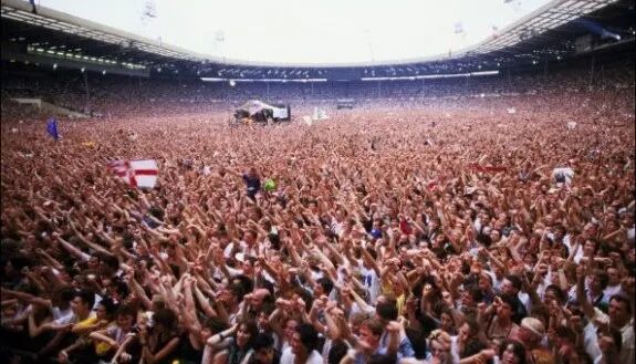 而科技,应该也正在搀扶每个具体的人编织自己的意义。这些微小的意义,终究会像雪花一样飘落在土地上,孕育一场万物复苏。1984年10月,英国广播电台播放了一则消息:在埃塞俄比亚的饥荒中,有数十万人正在饿死。那无关真理和对错,无关派系和阵营,那是一个个具体的,正在死去的人。一群音乐制作人和摇滚歌手坐不住了,他们决定搞一次盛大的慈善音乐会——Live Aid。但是让他们没想到的是,这次音乐会在筹备中,吸引了越来越多国家的乐手、乐迷,也吸引了全世界普通人的空前关注。因为人们受够了冷战,受够了过去几十年全世界的猜疑、敌视、四分五裂。于是,当 Live Aid 唱响时,它早已不止于慈善,而是成为了全世界想要重新团结在一起的象征。1985年7月,在潮水一样从世界的角落涌来的捐款中,U2、皇后乐队、鲍勃·迪伦、滚石、齐柏林飞艇,那些伟大的艺术家们在横跨大洋两岸的伦敦和费城先后奏响音乐。在全世界的电视机前,20亿人一起合唱英国歌手大卫·鲍伊曾在距离柏林墙仅460米之遥的地方录制的《“英雄”》。人们唱着:因为我们彼此深爱,这是事实;我们能成为英雄,哪怕只有一天。那一刻,有人忘情拥吻,在不知何时能倒塌的铁幕下,在不知何时能化为礼花的炮弹前。![]()