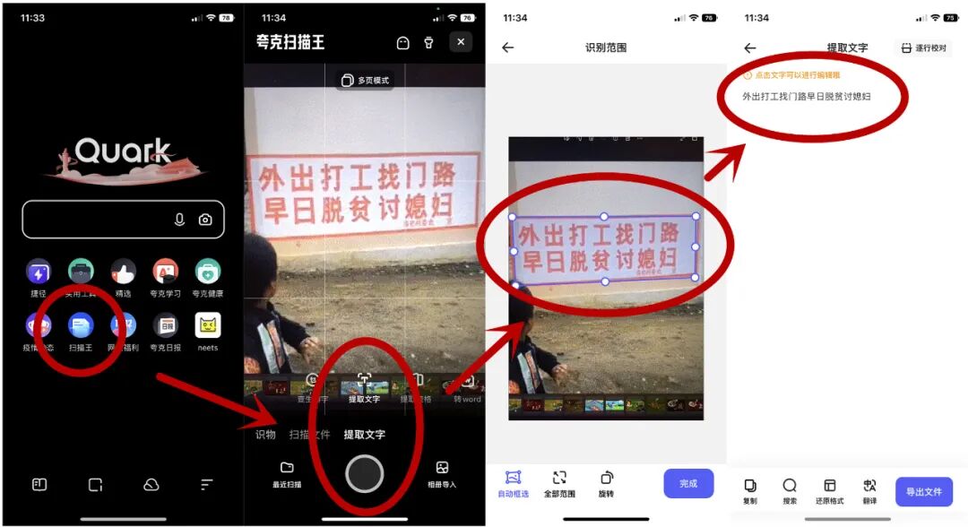 这个显而易见的道理,我们却在相当长时间里选择了集体无视。只有在宏大叙事的酒醒时分,才有越来越多的人看清“杨柳岸晓风残月”——AI不止能照耀恢弘的大时代,也能照亮脚下的小时代。下面,我们不妨松一松已经捏到发抖的拳头,来看看周遭的“小物件”。在2022年,我和夸克 App 的小伙伴们聊了一次,发现他们在做一个非常不起眼的“小”工具——扫描王。随便拿来一张纸,无论是打印的文件,还是制式的发票,无论是手写的账目,还是排版复杂的海报,扫描王都可以分毫不爽地把其中的信息提取为“数字形态”。所谓数字形态包括:图片、文字、带排版格式的文字,还有图文混排。1)别看只是扫描,其中却用到非常多深奥的 AI 算法,包括去手写、去瑕疵、弯折书页展平、手写体识别等等;2)这是人类历史上第一次把 AI 变成普通个体手里的工具——像锤子和打火机那样廉价且成熟的工具。