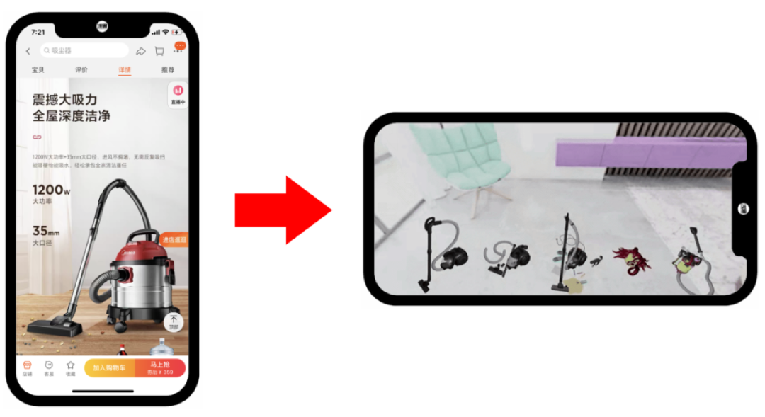 现实物理世界的一笔一划、一草一木、蛛丝马迹会跟随每一个人的生活轨迹,开始润物细无声地被数字化。你想想看,2000年左右,互联网方兴未艾的时候,是谁一点点构建了互联网的内容基石?是各个网站的站长们、是新浪博客的写手们、是泡天涯论坛的GGMM们,是百度贴吧的水友们,是淘宝电商上的卖家们,是在QQ相册里疯狂上传照片的葬爱家族们。他们用自己的大脑计算力,用不揣冒昧的傻劲儿,用飞舞的指尖一点点雕刻出互联网的一草一木。如此对比来看不难发现,借助人工智能把现实世界数字化,和当年借助人类智能把现实世界数字化,本质上是一回事儿,只不过这次更牛X。今年春天,我还和淘宝的几个先锋技术团队聊了一下,他们正在这波“现实世界数字化”的浪潮里击水。比如,他们尝试把“商品详情”从一个没有厚度的“像素图片”变成前凸后翘的“体素物品”。设想这个场景,你要买一个吸尘器,过去只能通过宝贝详情里的图片脑补使用方法,现在,你可以进入一个虚拟房间,亲自插拔那些吸头,体验对不同材质的吸尘效果再决定买不买;再设想一下,过去你想买一个衣服,只能脑补上身的感觉,买来发现不好再退,现在你就可以让你在3D数字世界1:1的“分身”在线试穿这件衣服,省得退来退去浪费资源。看了上面的例子,有些浅友会油然感到“数字世界的荒凉”——日常用到的用品成千上万,难道都要把他们数字化吗?没错,但这件事儿靠人做,做到宇宙爆炸也没戏,必须靠 AI。一种叫做 NeRF 的 AI 技术,正在为万物体素化打开一扇门。淘宝的底层技术团队开发了一套工具,用手机摄像头围着物体转一圈,就能把它从现实世界里给“抠”出来,成为体素模型。你看,这样一来,用手机这个“扫描仪”,卖家几秒钟就能制作一个体素模型,和拍个短视频一样简答。没有意外的话,未来几年,我们身边的万事万物会迅速被数字化,数字空间里的“高质量内容”会像2000年左右一样来一波暴涨。只要有了足够多的数字内容,想象中的“元宇宙”不就具备了条件吗?元宇宙里的像素/体素内容,就是互联网里文字的继任者。