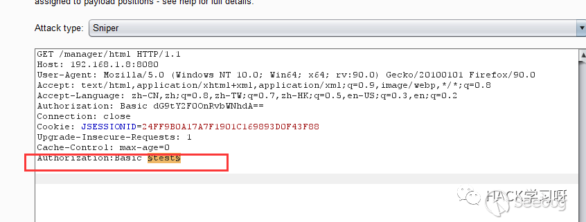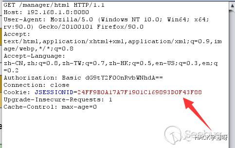 这里访问http://192.168.1.8:8000/manager/html进行抓包,在没有输入帐号密码的时候是没有什么数据的