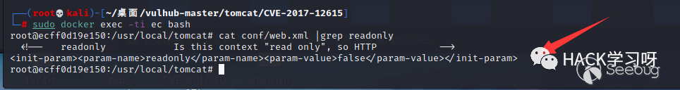sudo docker exec -ti ec bash //进入docker容器cat conf/web.xml | grep readonly