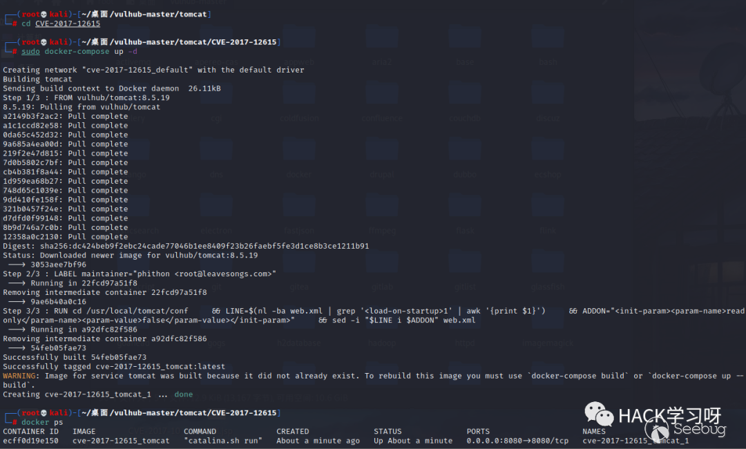 sudo docker-compose up -ddocker ps //查看docker环境是否启动成功