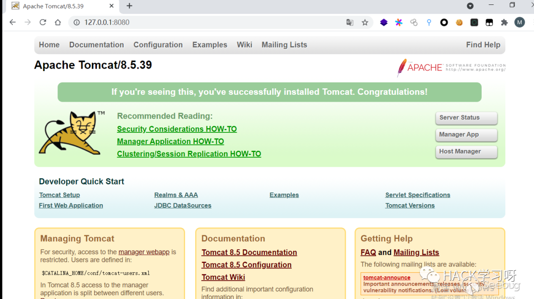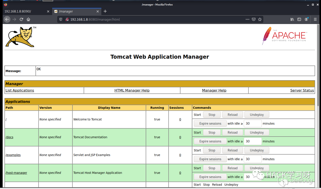 访问后台管理地址,使用tomcat/tomcat进入后台