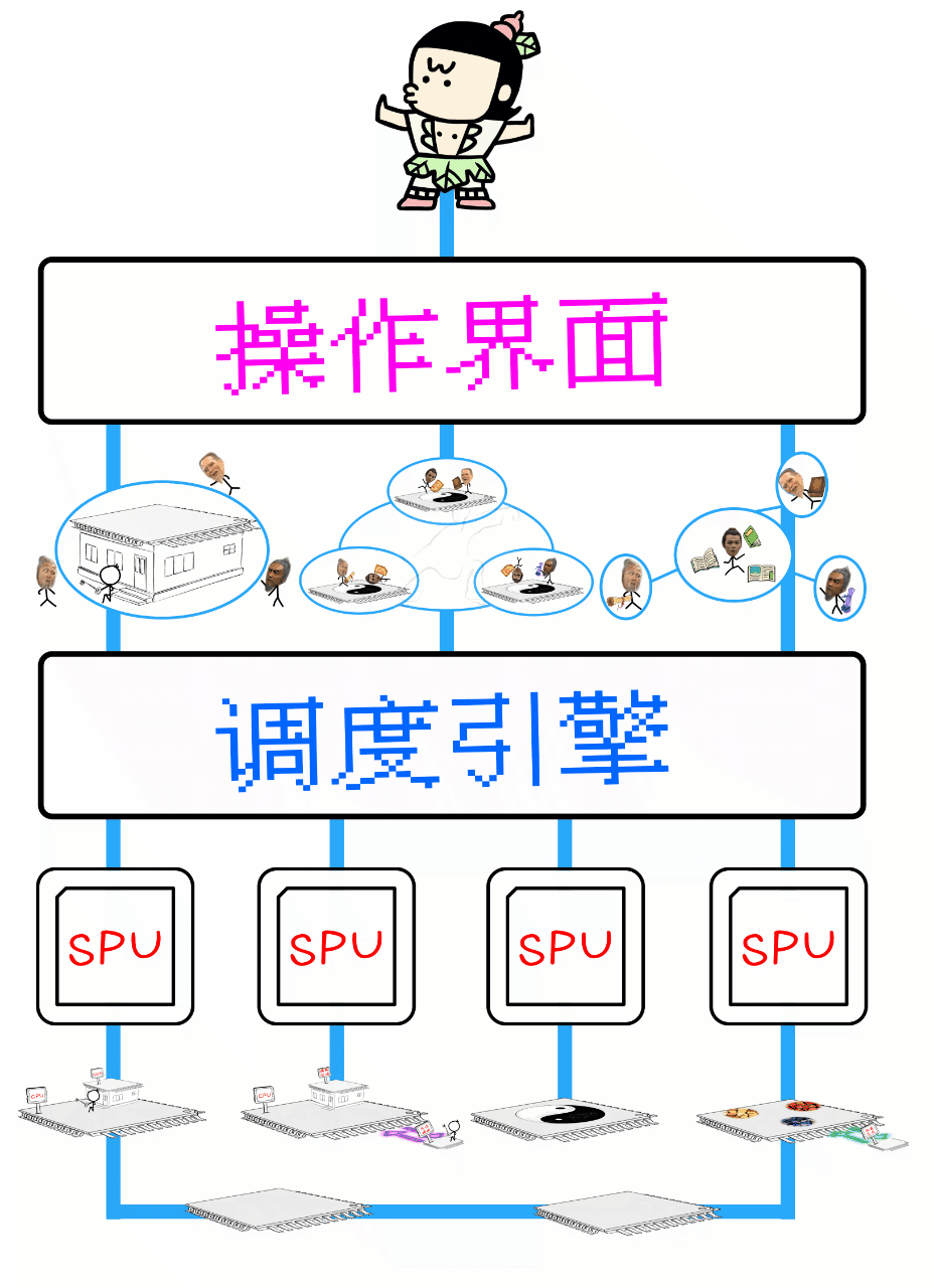 你看,刚才这些翻译是手动“裸写”的,看上去非常流畅。可是,审思他们要做的恰恰是把这种翻译让机器自动完成,难度可想而知。到后来错误没有了,但会有很多冗余动作,执行效率非常低;再后来,机器翻译指令的效率虽然和人相比还有距离,但已经渐渐能看到人类的背影了。比如,不同的隐私计算技术路线使用计算设备的姿势是不同的,这就导致在过去,如果一个隐私计算任务既用到“多方安全计算”,又用到“同态加密”,就得准备两套计算设备。但审思他们用多年的功力把这些设备运行时的基本动作给抽象出来,变成了一个通用计算单元。这就是 SPU。有事儿您和 SPU 说,SPU 再来调度计算芯片就行。这么一来,老师傅不用管下面运行的是什么设备,只要对着 SPU 写代码,就肯定能运行。再比如,跨网的隐私计算路线——例如“多方安全计算”——需要大量的网络传输。审思他们就联合隔壁的“双子座实验室”,搞出了一个“猎豹协议”,在两方联合计算的情况下,可以大大提高数据传输的速率。2021年,眼看代码越堆越高,功法越来越完善,此时再低调,实力已经不允许,一众大侠决定出山。他们给这一套神功起了个名字——隐语。审思拿出一张巨大的图,隐语像一根隐形的蓝线,穿起了5层珍珠。3、混合调度(用来把任务分配并且“翻译”给计算单元);4、逻辑层计算设备(包括 SPU 和 Occlum 等具体承接计算的模块);