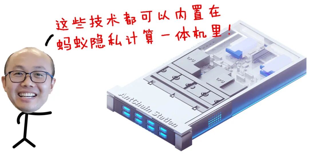 有了这个芯片,同态加密的运算平均速度可以被加快1000倍左右。“当然,原来同态加密算法比明文算法要慢100万倍,即使加速了1000倍之后,还是比明文计算要慢1000倍,没办法大规模应用。。。”守孟坦白地说,“不过,习武之人贵在精进,我们仍在努力修炼。”其实在我们蚂蚁还有很多大侠,他们同样做了很多提高效率的技术,这些技术明珠合在一起,才让隐私计算的方方面面面都变得越来越快。某人不敢贪功,只是时间有限,没办法给大家一一介绍了。
