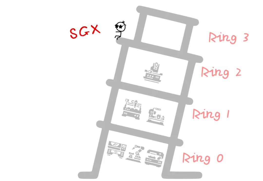说起来,守孟和一众大侠恰恰曾在 Intel 的 TEE——也就是 SGX——的技术发展史上留下过浓墨重彩的一笔。要想讲清楚这“一笔”,还需要多解释一下 SGX 的工作原理。Intel 的 CPU 运行时,会让不同的程序跑在不同的层级,总共分为 Ring0-Ring3 四层。低层级的程序有权调动更多的CPU能力,从而“管理”高层级的程序——例如一个在 Ring3 层跑的应用程序死机了,Ring0 层的操作系统就可以告诉 CPU:强制关闭它。这就像盗梦空间一样:每一层梦境都建立在下层梦境之上,下层的做梦者有办法让上层的梦醒来。原理讲完了,那 SGX 跑在哪一层呢?其实是跑在 Ring3 层。因为层级越靠近底层,可以调用的芯片功能就越多,程序代码就越复杂;代码越复杂,反而越容易出现漏洞和安全问题。所以,Intel 就干脆把 SGX 放在了最高层 Ring3,独坐高楼,墨镜一戴,谁也不爱。可有一利就有一弊。放在 Ring3 层的 SGX,由于无法调用底层操作系统的能力,导致它的功能也很简单,只能运行基础语言——例如C++——写的代码。可是,隐私计算的算法经常搞得很复杂,动不动就要用到人工智能算法,这些都是 Python 之类的高级语言写的,根本跑不了。于是,守孟就用了毕生功力,把各种语言依赖的库都塞进了一个“操作系统”里,这个操作系统运行在 Ring3 层,专供 SGX 来使用,它就叫Occlum。为了天下苍生,Occlum 刚一写成,守孟他们就捐赠给了开源社区。不用白不用,白用谁不用!Occlum 一下蹿红成了最流行的 SGX 开发组件,目前世界上跑在 intel SGX 里的程序,有很大一部分都是依赖 Occlum 来运行的。Occlum 大大降低了编码门槛,所以顺理成章地成为了 TEE 技术里一颗耀眼的明珠。搞定了 Occlum 之后,守孟和一众老师傅又马不停蹄地盯上了另一个难题,这也是之前审思碰到的问题——Intel 是一家外国公司,某些中国公司用它来做隐私计算,会不符合安全要求。。。当时,守孟跟一众大侠讨论,觉得如果从底层芯片的角度看,这也不是什么解不了的难题。我们对 SGX 和这类可信执行环境的原理太熟悉了,如果在我们自己的芯片上把这个原理实现出来,就没问题了嘛!