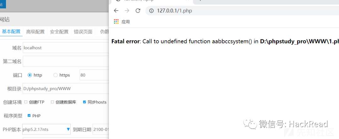 经过测试 5.3 和5.5可以成功执行命令,5.2和php7无法执行<?php