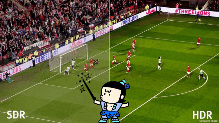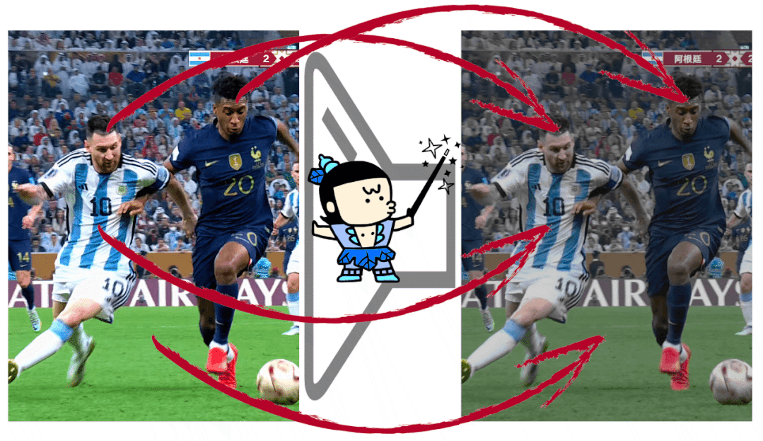 遇到普通的屏幕,就给它 SDR 的视频;遇到高级的屏幕(比如 iPhone11以上的屏幕)就给它 HDR 的视频,完美!刚才说了,抖音从央视接收的信号是 HDR 的。但抖音用户的手机却有各种档次,有的可以显示 HDR 画面,有的只能显示 SDR 画面。所以抖音必须把推流的档次分成几种:最高等级是 4K+HDR 的;下面的一些档次,例如普通 4K、1080p、720p,就都改成 SDR 格式。这么一来,不就需要一个把 HDR 转成 SDR 的引擎么?估计大家都能想到一种最简单粗暴方法:去掉一个0呗。假设一个 HDR 像素点是1000尼特,转成 SDR 就给它变成100尼特;以此类推,一个 HDR 像素是891尼特,转成 SDR 就变成89尼特。。。这种操作,有个专业名称,叫做“色调映射”(Tone Mapping)。当然啦,真正做色调映射的时候用到的算法曲线会稍稍复杂一点,但总体思路就是酱:在保证明暗关系大体不变的原则下,把宽幅的亮度区间压到窄幅的亮度区间。话说这个活儿,胖虎他们是很轻车熟路的。比如抖音上一些演唱会的直播,也需要把 HDR 画面转成 SDR,或者一些游戏直播,还需要反过来把 SDR 映射成 HDR。这次搞世界杯,胖虎他们也没多想,就把之前的色调映射方案拿来继续用呗。但是!很快就有人站出来表示反对。。。胖虎说这是黑人球员。看片员说别打岔,白人球员也很黑!画质团队意识到了问题所在:一幅典型的比赛画面中,往往是天上的大灯最亮,脚下的草坪中等亮,而最最最重要的球员却是偏暗的。在 HDR 画面里,球员虽相对较暗,但绝对亮度还是有几百尼特的,能看清。可是映射到 SDR 里,本来就暗的球员只剩了几十尼特,“暗得太明显”了。。。这咋整?办法也有,那就是调整“映射算法”,有针对性地把球员映射得更亮,不就行了吗?可难就难在要有“针对性”上——必须只把球员变亮,其他的东西不能亮。换句话说,要让算法学会把球员“挑”出来!眼看世界杯开哨在即,留给中国队的时间不多了呀。。。胖虎他们急出一头汗,把一群看片员拉进小屋里,就做一件事:他手动调整映射算法,看片员盯着画面,说“好”还是“不好”。这样干了一星期,看片员眼冒金星,老师傅也终于魔改出了一套新映射算法,用胖虎的话说就是:“手动”+“自适应”。所谓手动,就是看了大量的足球转播画面后,归纳出了球员的“共性”——一般都在哪个亮度值区间——然后把这个区间的映射值调高。所谓自适应,就是转播的时候,算法会先计算一下目前这一帧相比“平均值”来说更亮还是更暗,也就是找到它的“个性”,然后再把里面的球员亮度做微调,映射得更精准、自然。