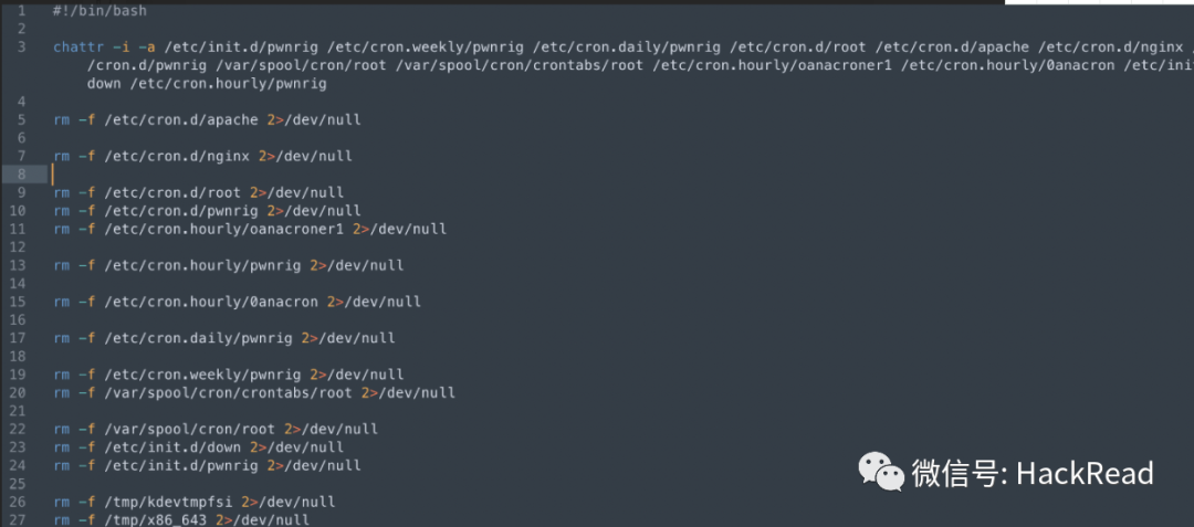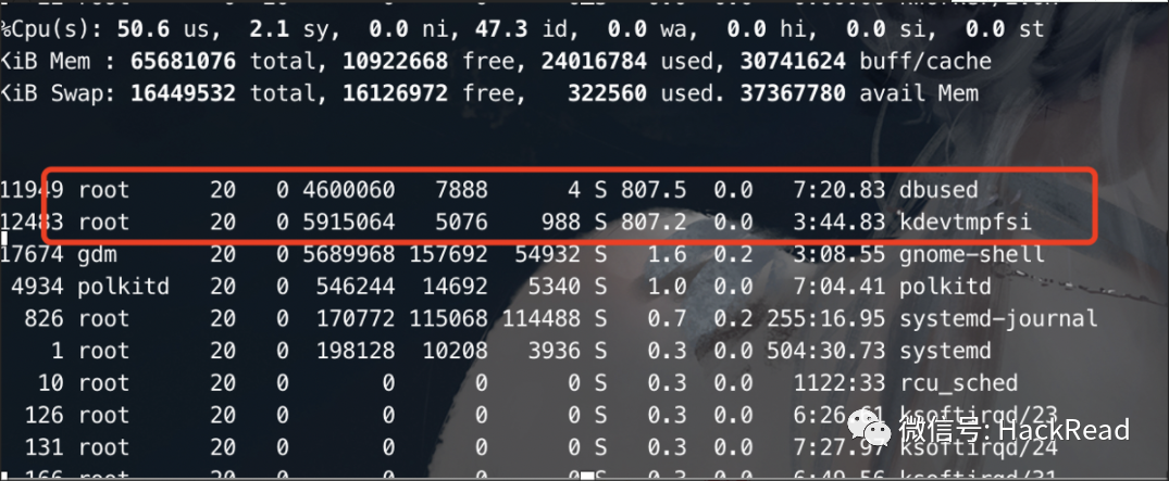 情况简介某日接到用户电话,用户某应用系统微信公众号平台服务器应用运行异常掉线卡顿,运维人员检查后发现服务器存在占用大量CPU资源的恶意进程,且无法清除该进程,导致WEB应用服务无法正常运行。接触到的大