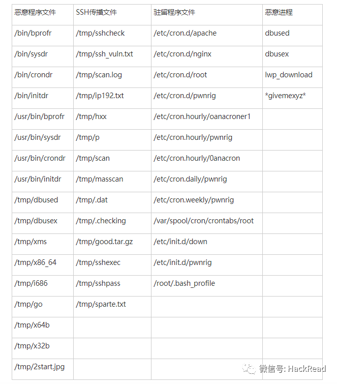 rm -rf /bin/bprofr /bin/sysdr /bin/crondr /bin/initdr /usr/bin/bprofr /usr/bin/sysdr /usr/bin/crondr /usr/bin/initdr /tmp/dbused /tmp/dbusex /tmp/xms /tmp/x86_64 /tmp/i686 /tmp/go /tmp/x64b /tmp/x32b /tmp/2start.jpg
