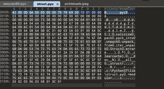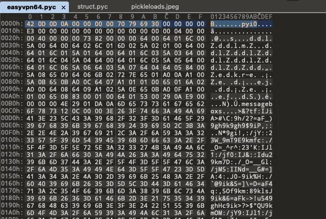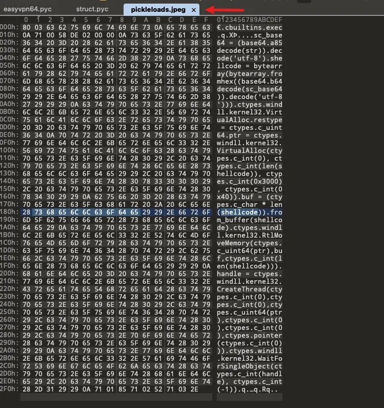 得到py文件,easyvpn64.py为后门主程序,其中执行shellcode代码隐藏至图片中。