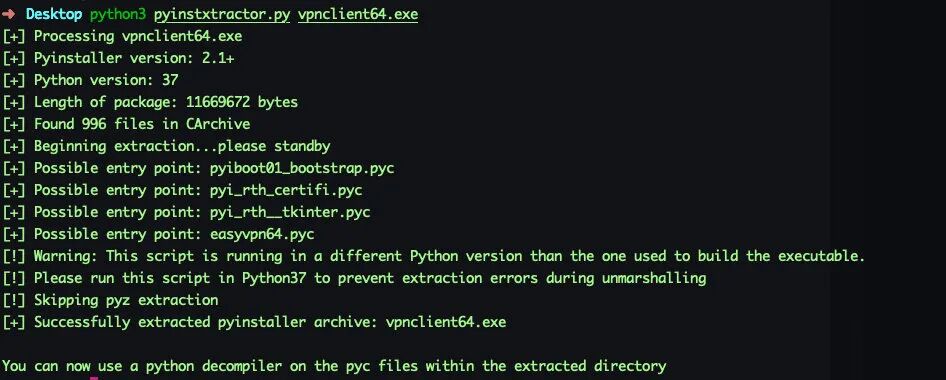 由于发现VPN客户端为python语言编写,更不对劲了,反编译看下。