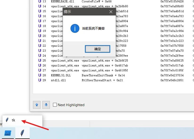 哦豁,竟然提示不兼容当前系统;看到弹窗有Pyhton代码编写的特征。感觉到前面的打点由过于丝滑,不自然的警觉了起来。
