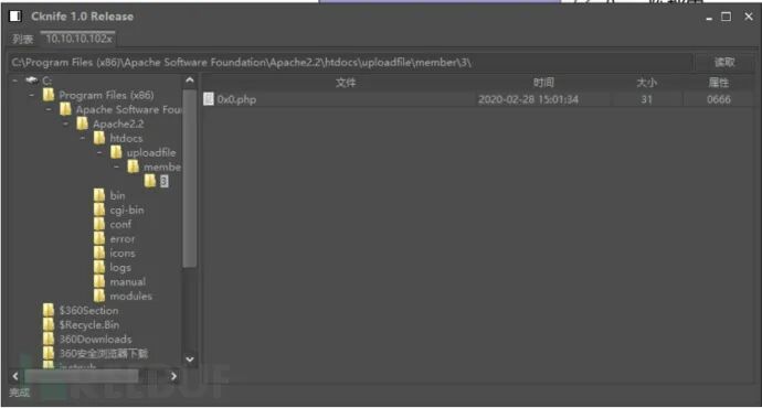 验证上传成功后,打开菜刀软件输入上传的网站路径和参数(一句话木马的密码),可以连接服务器