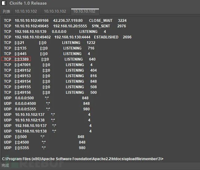netstat -ano再次查看端口情况,发现3389远程端口开放