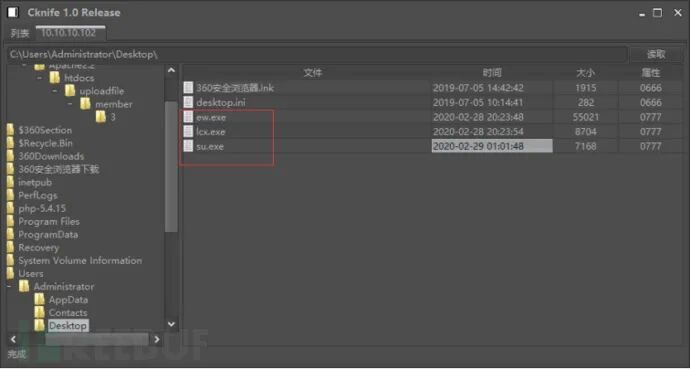 利用刚刚webshell连接菜刀的操作,在文件管理模块中上传我们需要的工具ew.exe、lcx.exe、su.exe
