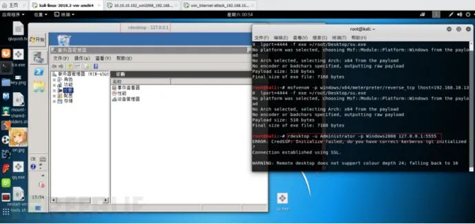 本机kali输入rdesktop -u Administrator -p Windows2008 127.0.0.1:5555