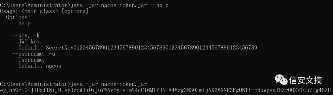 其中提到 docker 启动 nacos 开启认证并配置NACOS_AUTH_TOKEN时,secret.key并未生效,依然使用默认的key。外部攻击人员可以使用这个默认的key生成nacos用户的jwt认证token,并访问OpenAPI接口,达到权限绕过访问后台资源的目的。