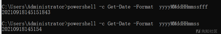 powershell -c Get-Date -Format yyyyMMddHHmmssfff