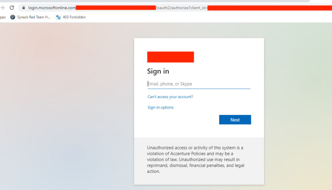 现在,一个应用程序使用Microsoft SSO系统进行身份验证。当访问internal.redacted.com URL时,web浏览器会重定向到单点登录系统: