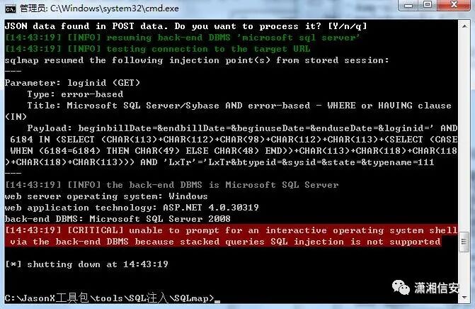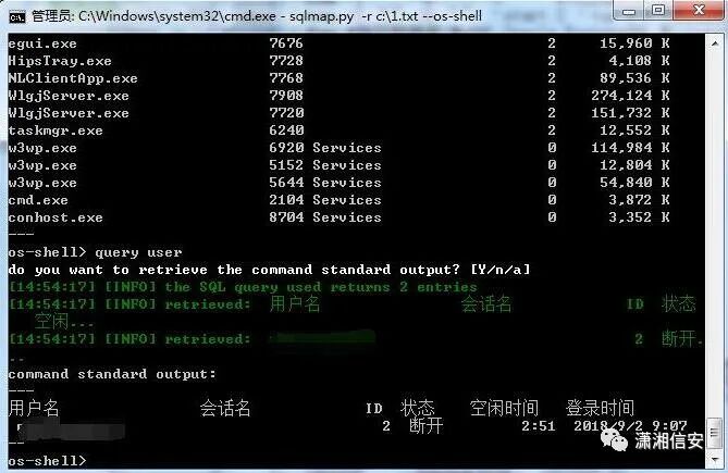 报错了,找不到解决方法只能重新找其他注入点试试了。咱们继续burp抓包,然后sqlmap验证。最后,终于有个注入点可以执行交互式shell了,看了下还是system权限。从上图可以看到,服务器装了eset杀软,进程是egui.exe、ekrn.exe。