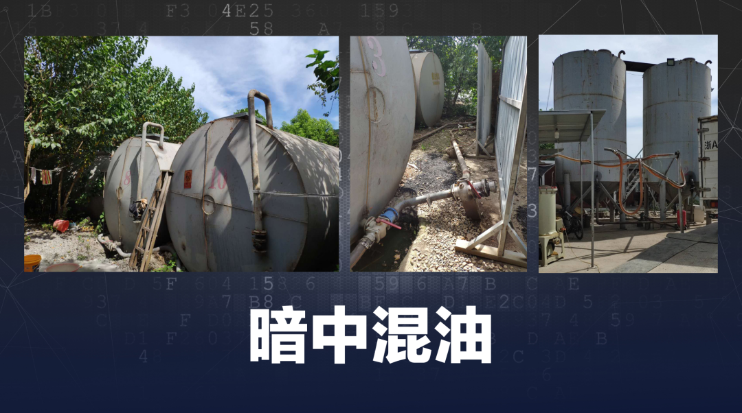 2021年3月,为了进一步调查核实储油和混油的细节,我们回到张明储油、混油的主要作案地某油库现场进行复勘。发现这里有大片的空地及一排平房,远离市中心,相对偏僻。通过无人机航拍对整个油库的布局进行固定,这里共有13个油罐,其中10个卧罐隐藏在后院的杂草中,3个油罐放置在前院空地上,2个竖立、1个横放。通过实景细节拍摄,看到油罐与油罐之间使用皮管连接,阀门控制油品进出,油库空地下方还埋有地下管道连通前后院油罐。