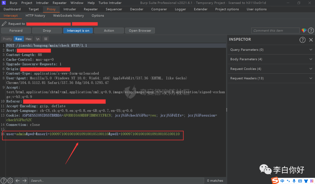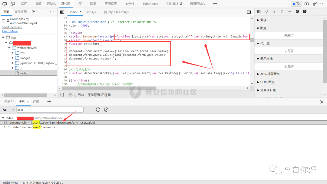 通杀挖掘TIPS:EDU有个开发商排行榜,拿下一个就是通杀作为想上大分的人,快人一步开始打点,鹰图语法:web.body="xxxx公司",经过一番打点,找到一个开发商不大也不算小,就是这个了F12,想看一下会不会有前端的一些逻辑判断,可是第一眼就无了,都是第三方的库第一步:账号admin,密码admin,显示账号不存在第二步:账号admin'or',密码admin'or',显示的不一样了,感觉存在注入第三步:账号admin"or",密码admin"or",看了看显示的页面和第一步一样,一定存在注入了,并且是单引号闭合之前学过一点JS逆向,Ctrl + Shift + F,搜索被加密的参数 - user1,找到了加密函数(呜呜这个逆向好简单,丝毫没有展示出我的逆向技术)放到在线运行JS的平台看一下,确实和数据包里加密的一样下面就是用python写sqlmap的插件,让sqlmap的payload也加密,然后看这个JS写的加密函数逻辑简单,就用python代码重写了一下(虽然不好看,能用就行 /摆烂)JS与Python对比