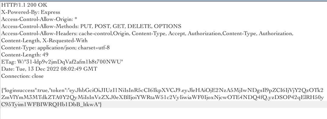 在验证测试过程中,发现此服务器未对登录成功的响应报文进行校验,导致能获取登录成功的响应报文后,就可以通过正确的响应报文实现任意用户登录,导致信息泄漏等风险。先使用正确的用户名、密码登录,同时抓取正确登录的响应包。 发送的请求: