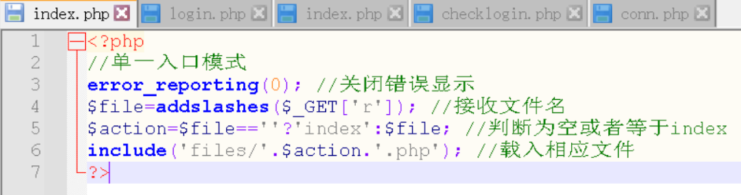 以熊海CMS为例。 熊海CMS admin目录下的index.php文件中,根据GET输入的r参数确定跳转的页面,如果没有r参数,就会自动跳转index.php的页面。