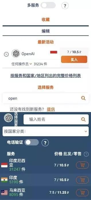 搜索 OpenAI 服务,并选择对应地区即可,我选择的是马来西亚能成功接收到验证码(一开始选了一个印度的但没接收到验证码),而且也挺便宜的。