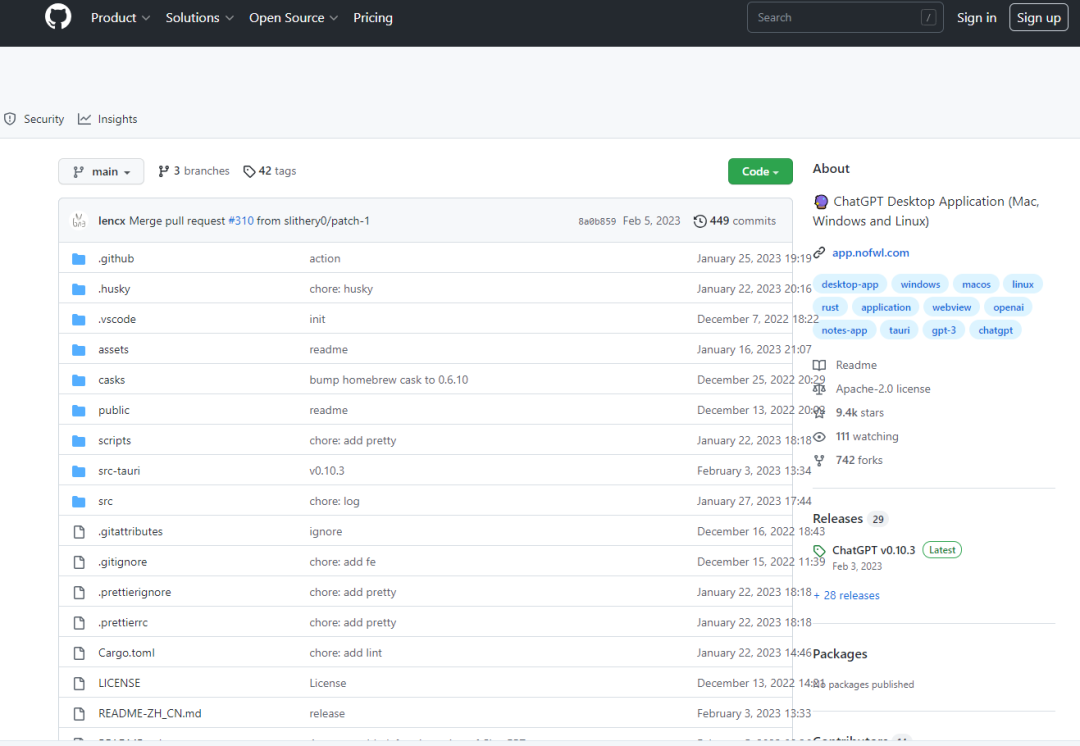 这个客户端的 GitHub 地址是:https://github.com/lencx/ChatGPT#-downloads