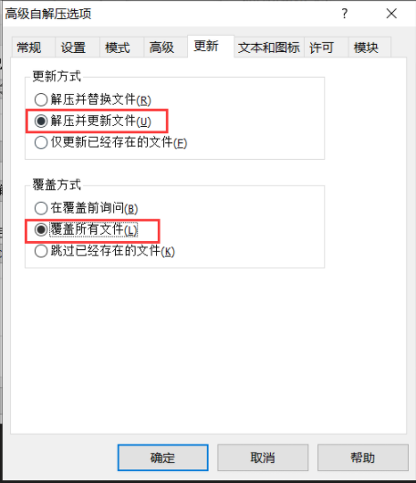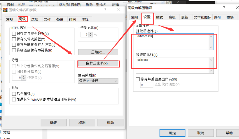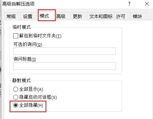 高级 -> 自解压选项 -> 设置