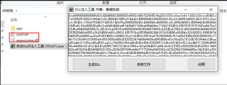 4.需要把两个文件放在被劫持的软件同目录下才可以运行