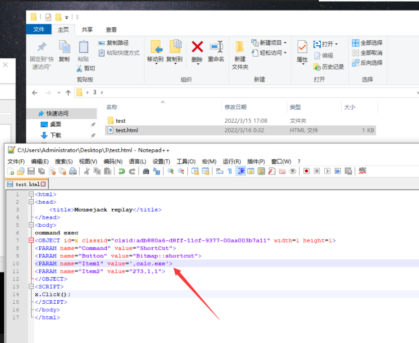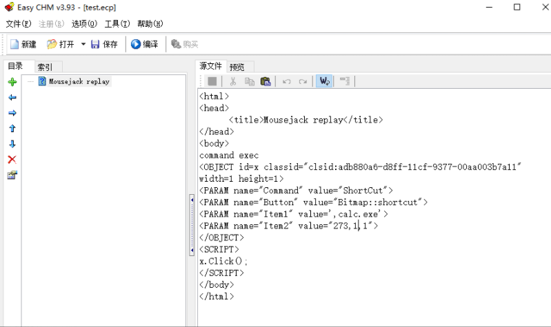 注意:",payload",上面代码中为",calc.exe",此处,payload前面要加一个英文版的逗号,,否则打开chm文档时会出错