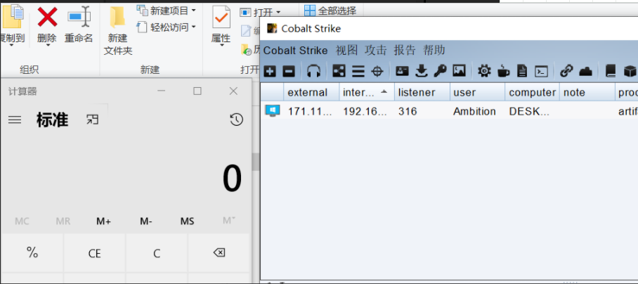 木马文件:artifact.exe 迷惑文件:calc.exe
