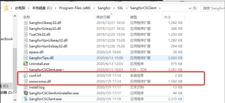 C:\Program Files (x86)\Sangfor\SSL\SangforCSClient 下的