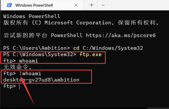首先说明一点:ftp加! 可以执行命令