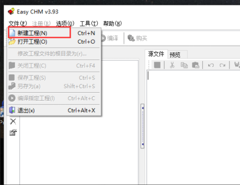 使用 EasyCHM 可以轻松的新建一个 chm 文件