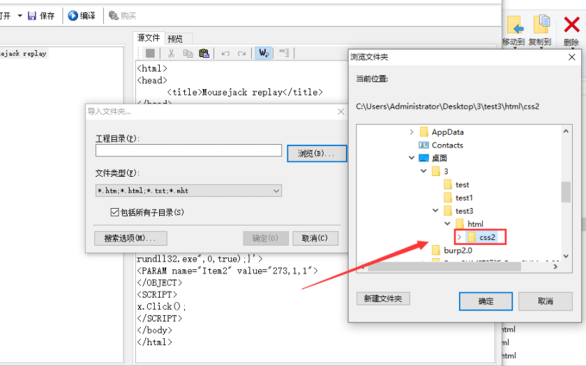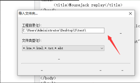 工程目录选择我们建立的test文件夹(html文件放在文件夹内)