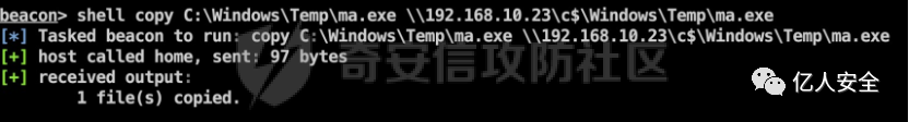 shell copy C:\\Windows\\Temp\\ma.exe \\\\192.168.10.23\\c$\\Windows\\Temp\\ma.exe