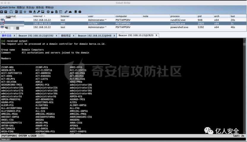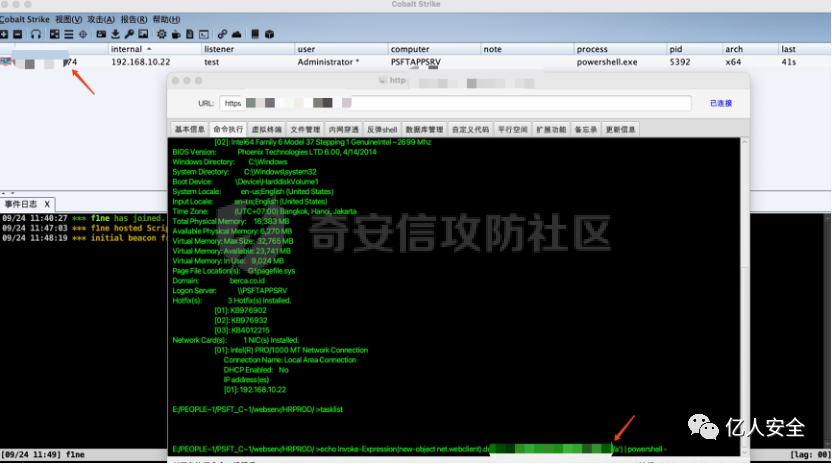 后续想继续收集一些域信息,但是因为权限不足,所以干脆一不做二不休直接祭出内网大杀器CS,直接powershell一句话上线CS
