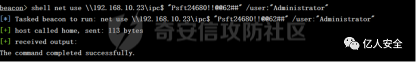 shell net use \\\\192.168.10.23\\ipc$ "Psft24680[email protected]@62##" /user:"Administrator"