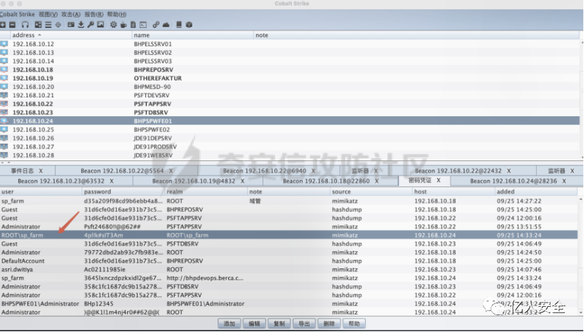 当我成功横向24的时候发现了一个域管用户sp\_farm,并成功抓取到了明文密码