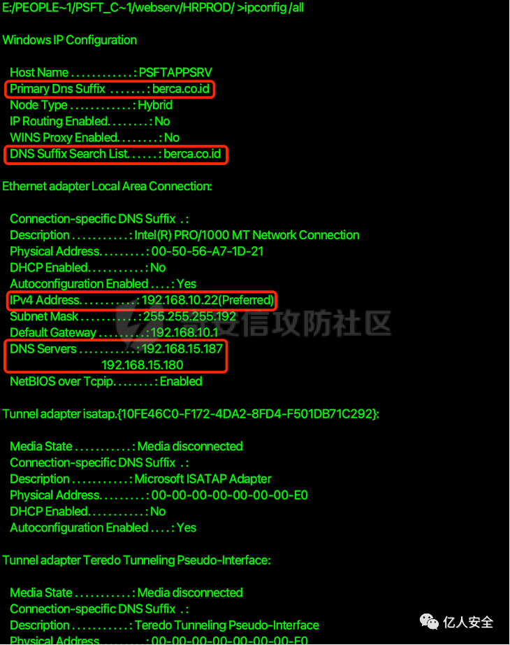 收集到这里,通过DNS服务器初步判断,192.168.15.180、192.168.15.187这两台就是域控机器,后面也证实这两台就是域控机器。