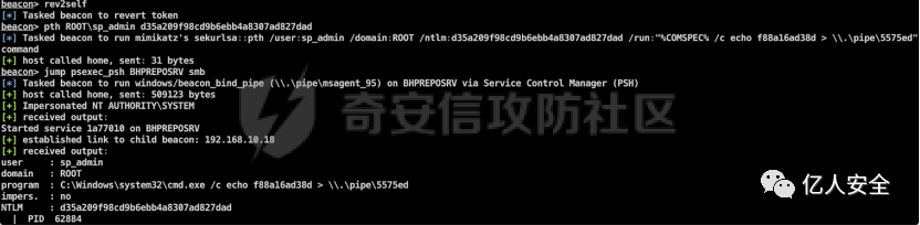 利用SMB Beacon成功上线后,后面就会有 ∞∞ 这个字符,这就是派生的SMB Beacon,之后再在这台机子抓hash
