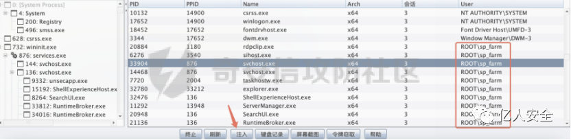 2. 如果没域管明文,可以查看当前机子是否有域管进程,注入域管进程上线